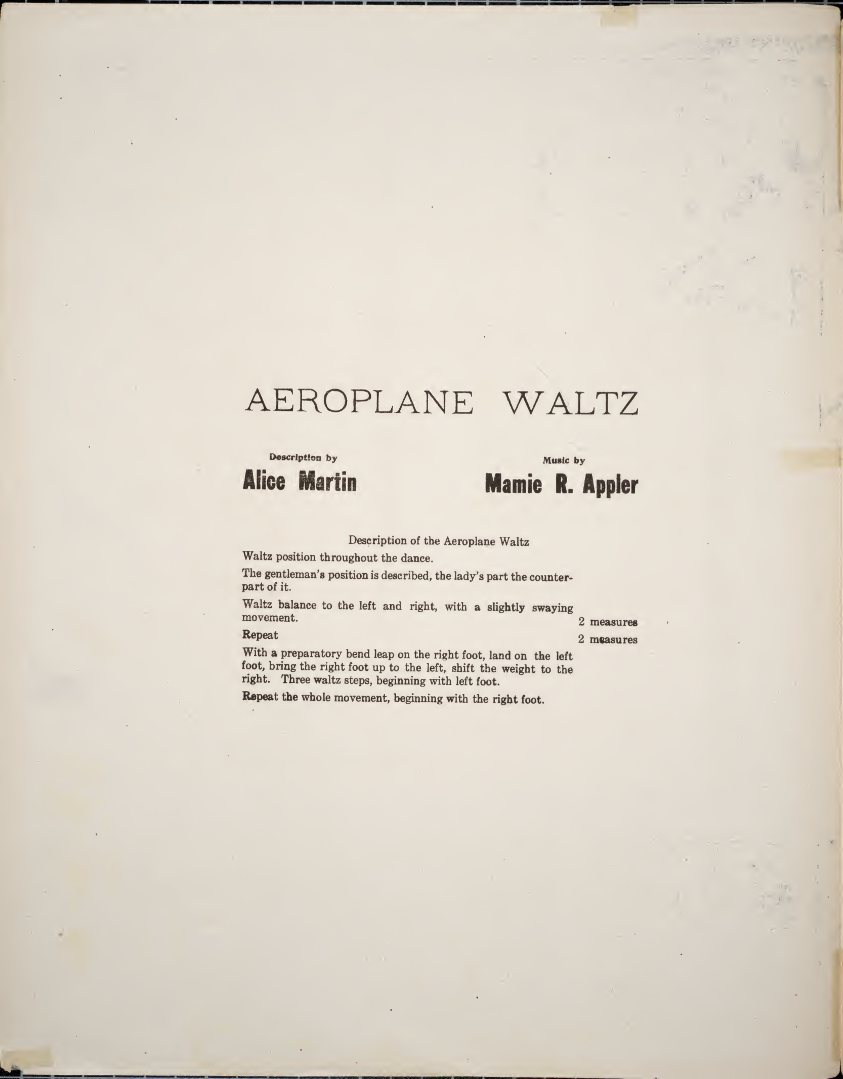 November 26, 2015 Mamie Appler’s Aeroplane Waltz, with description by Alice Martin 1666 × 2133 aeroplanewaltz00Appl 1 Aeroplane Waltz description