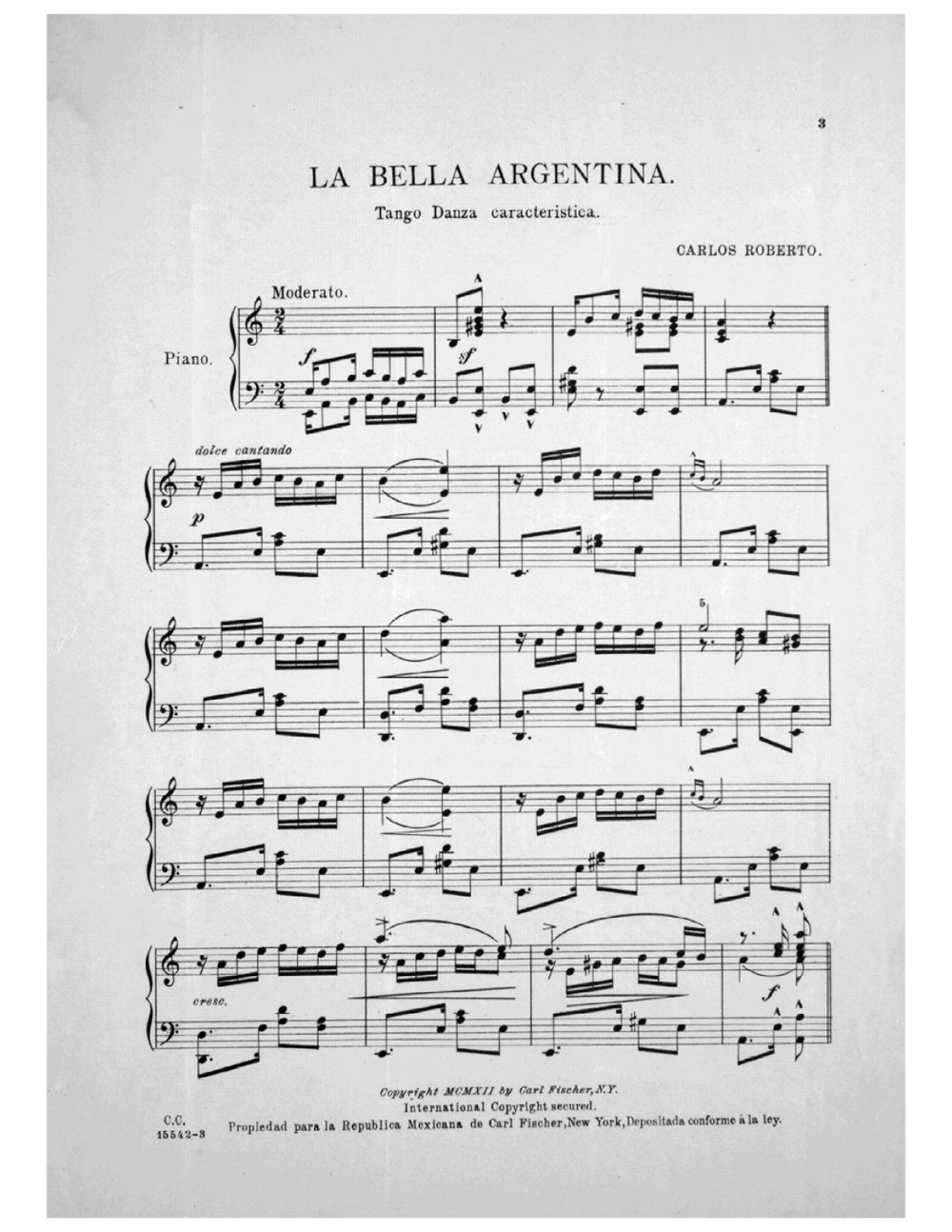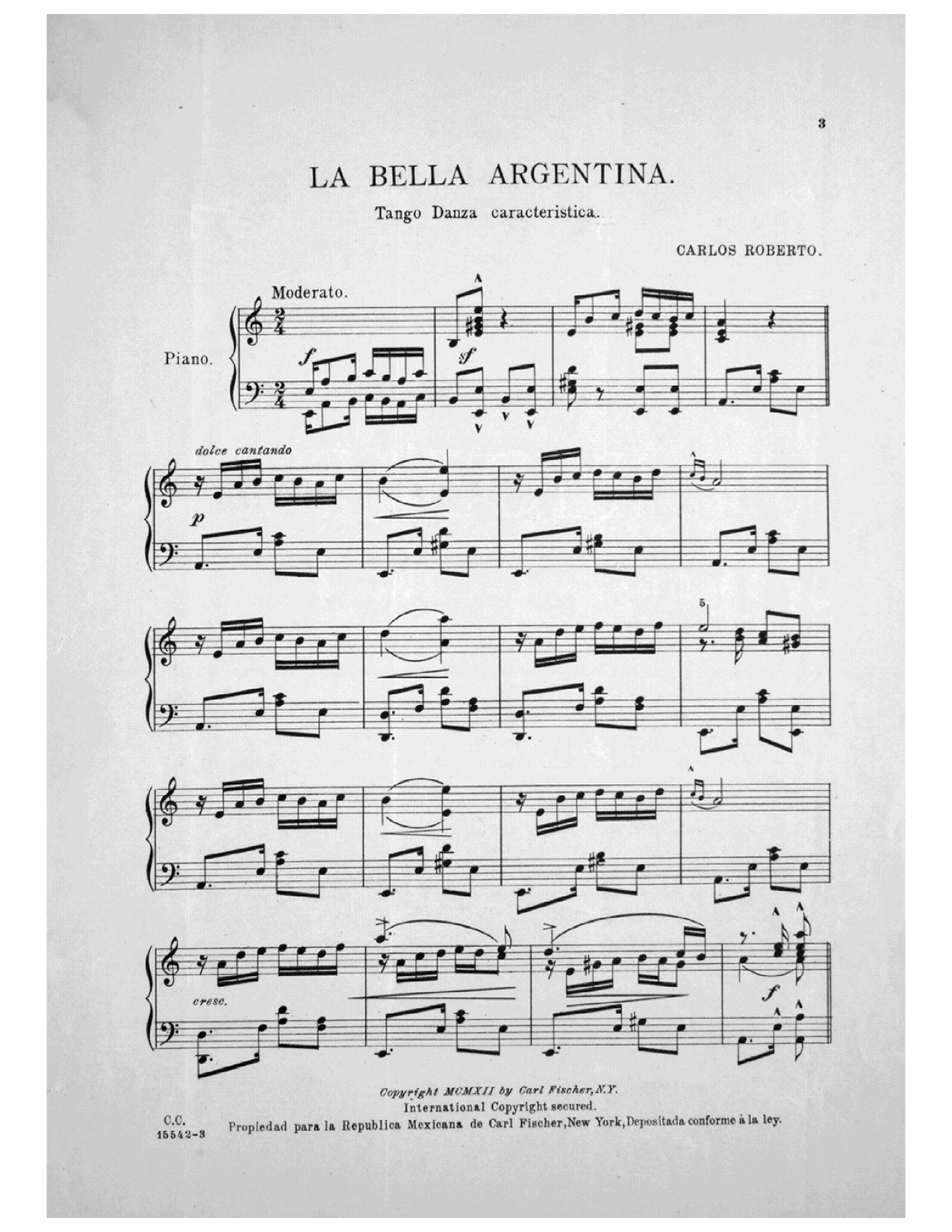 December 12, 2015 La Bella Argentina Tango, by Carlos Roberto – Sheet Music and Dance Description 1275 × 1650 [1912, us] Carlos Roberto – La bella argentina. Tango (Lester S. Levy copy) 2