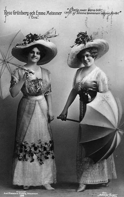 Rosa Grünberg & Eva Meissner in the operetta Eva, December 31, 1911. By Unknown photographer – Picture postcard from Axel Eliassons Konstförlag, Stockholm, Public Domain, https://commons.wikimedia.org/w/index.php?curid=18360175